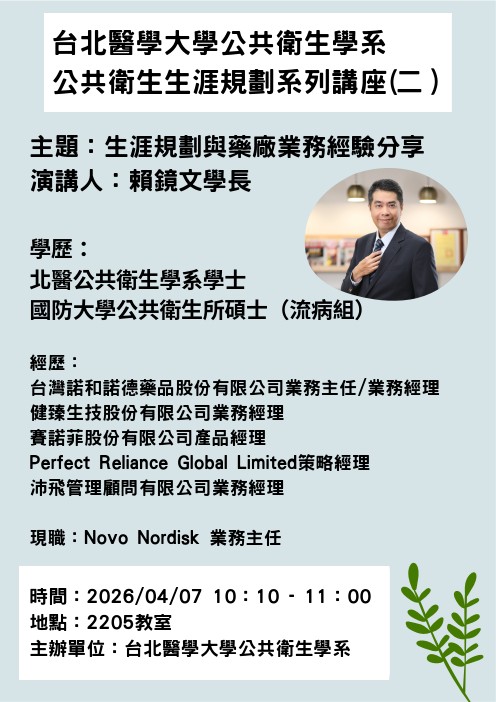 从公卫系出发,走进药厂产业,职涯可以有多少可能?
